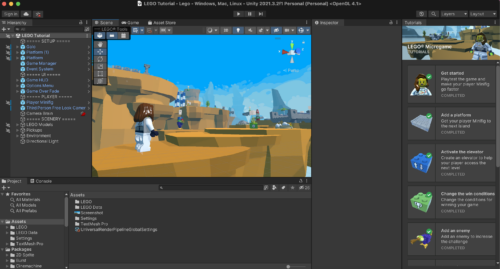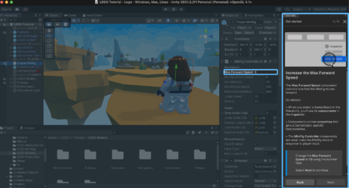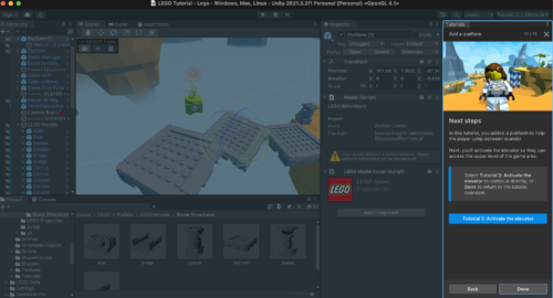 Als tweede heb ik de Lego microgame gekozen. Deze game vond ik eerlijk gezegd minder leuk om te bewerken dan de FPS game. Misschien ligt het aan mijn laptop, maar alles werkte erg traag en het spel zelf spelen ging ook niet heel soepel. Wel waren de aanwijzingen weer erg duidelijk, dus het was goed te volgen. Je moest in de Lego game meerdere elementen toevoegen. In de afbeeldingen hieronder zie je een impressie van hoe het eruit ziet.