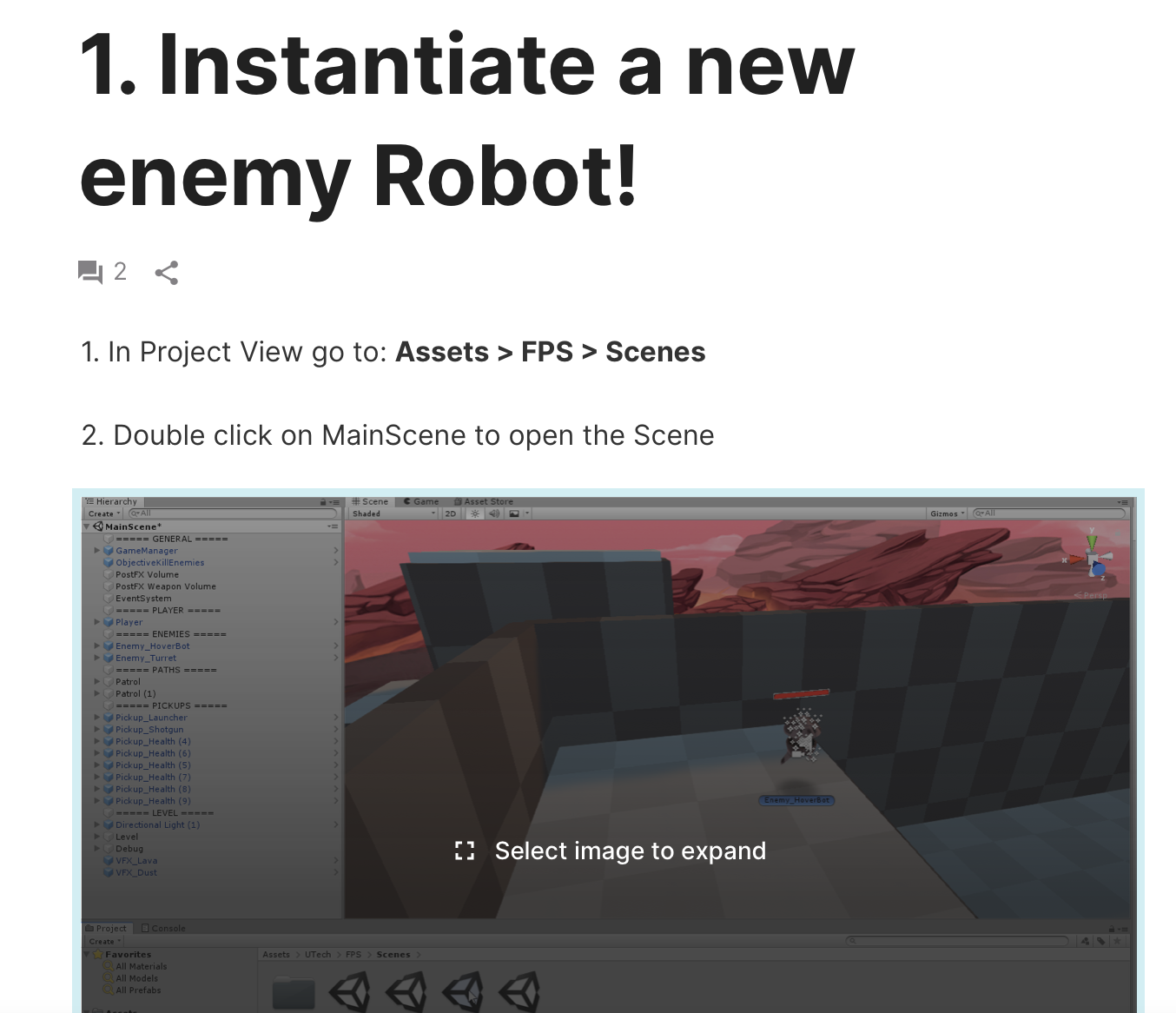 Als eerste microgame heb ik voor de FPS game gekozen. Hierbij moest je schieten op je vijanden zodat die op een gegeven moment “dood” gaan. Eerst kreeg je twee kleine vijanden, die je best makkelijk dood kon maken. Daarna ging je naar je grote vijand die langer blijft leven, dus moeilijker om dood te krijgen. Om de game te bewerken kon je verschillende elementen toevoegen. Dit werd stap voor stap uitgelegd. Zo heb ik bijvoorbeeld bananen op het speelveld neergelegd. In de foto’s en het filmpje hieronder zie je een beetje hoe het werkt.